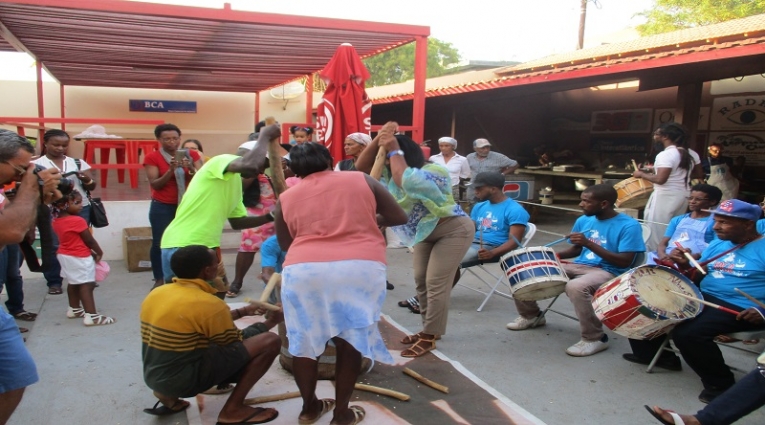 O pilão contou com a presença do festeiro deste ano, João Mendes, descendentes de famílias da ilha do Fogo.