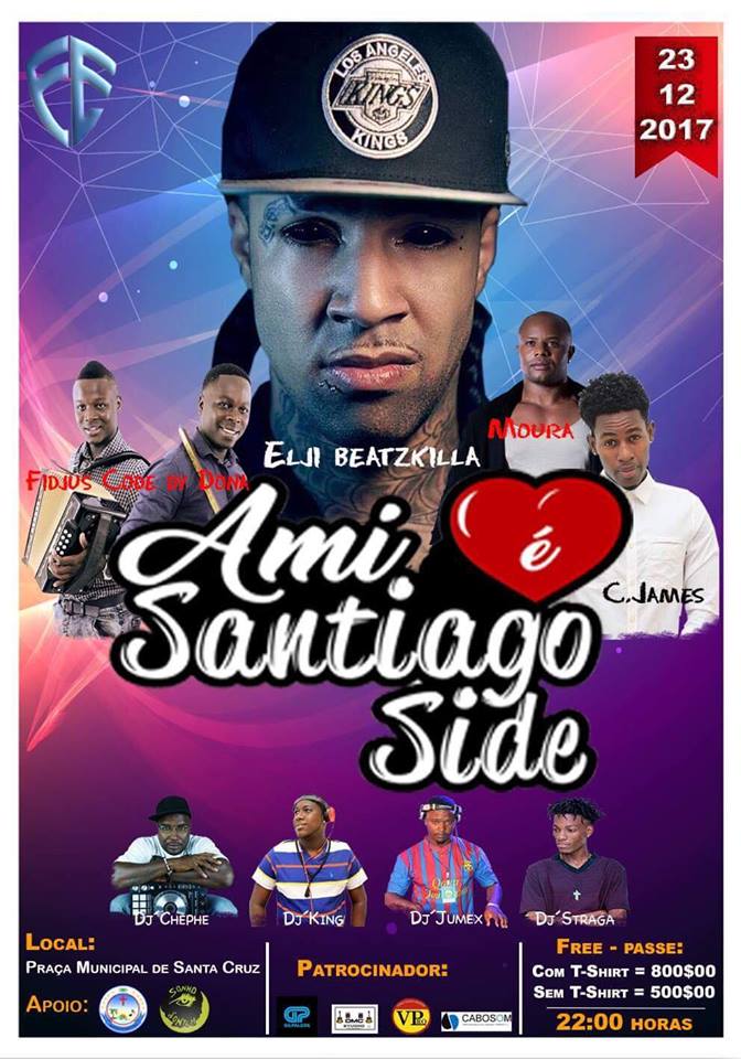 O cabo-verdiano, conhecido como matador do beat, Elji Beatzkilla é o artista da noite no evento AMI É SANTIAGO SIDE, que terá lugar no dia 23 de Dezembro, a partir das 22 horas, no largo da praça da Câmara Municipal de Santa Cruz.