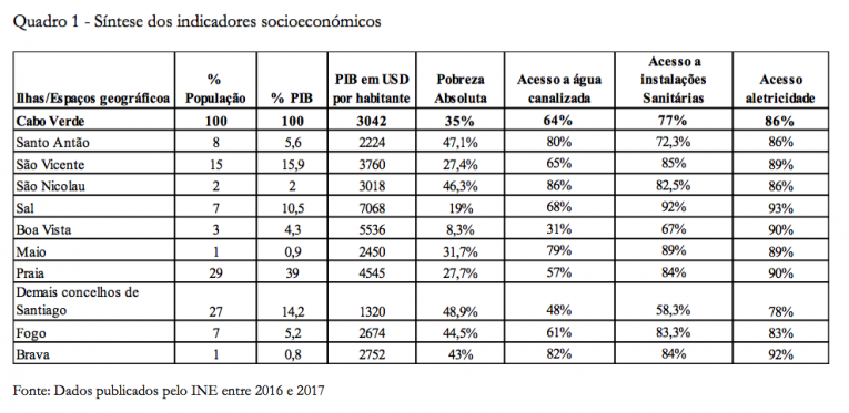 Em segundo lugar, argumentam que persiste uma enorme assimetria socioeconómica entre as ilhas, fruto alegadamente da centralização. Ora, os dados tornados públicos pelo INE entre 2016 a 2017 apresentam a seguinte radiografia do país: